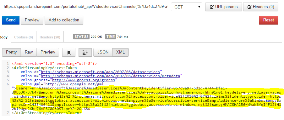 {VideoPortalURL}/_api/VideoService/Channels(‘{channelId}’)/Videos(‘{videoId}’)/GetStreamingKeyAccessToken